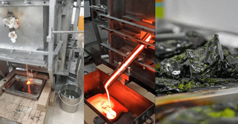 左:电熔炉设备;中:试制过程;右:固化成品。受访者供图