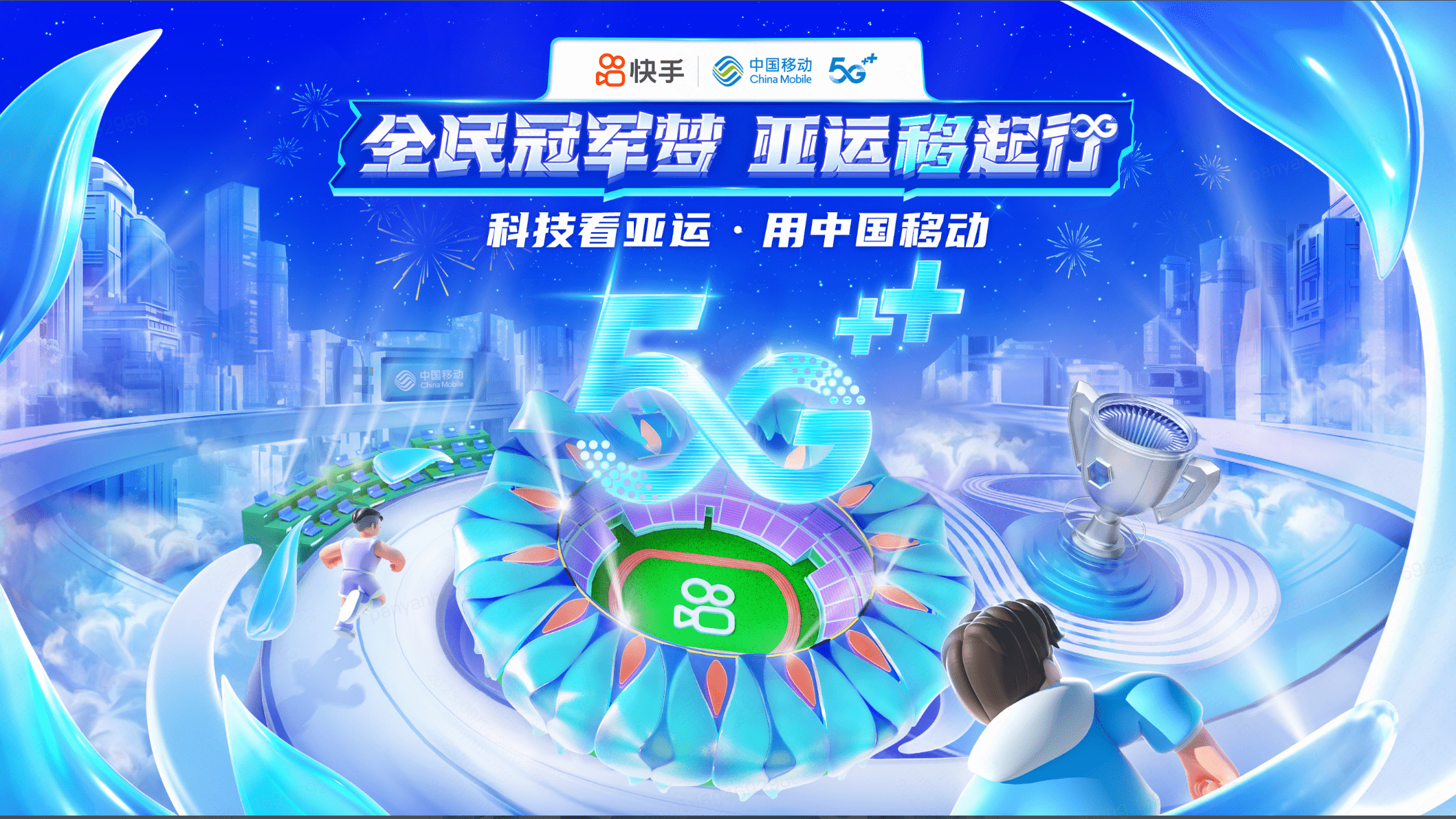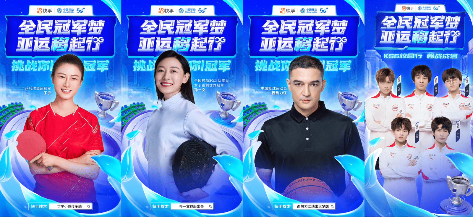 首先,从项目发起方来看,快手与中国移动在亚运营销领域具备先发优势。快手作为杭州亚运会赛事持权转播商及官方短视频分享平台,成为全民看亚运、聊亚运、参与亚运的核心阵地。而中国移动作为杭州亚运会官方合作伙伴,从赛事网络建设、数智化应用等维度,为亚运会贡献科技力量。双方自带“亚运基因”,强强联合发挥出“1+1>2”的营销效应。