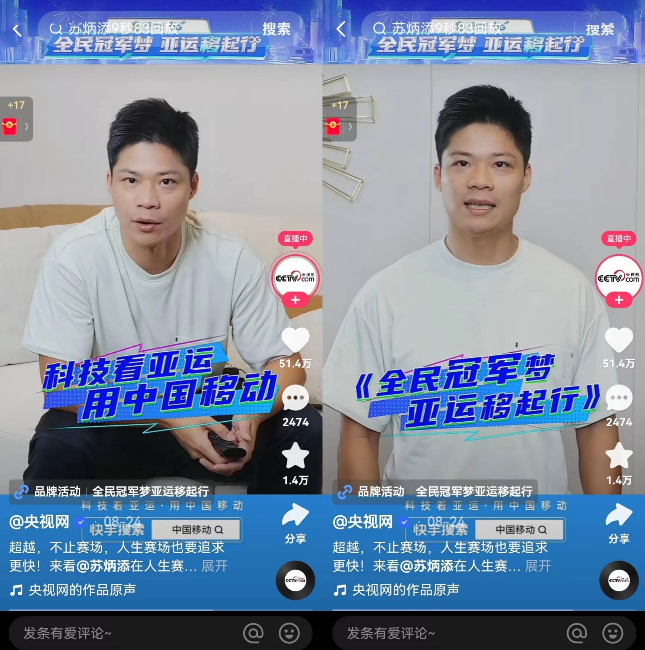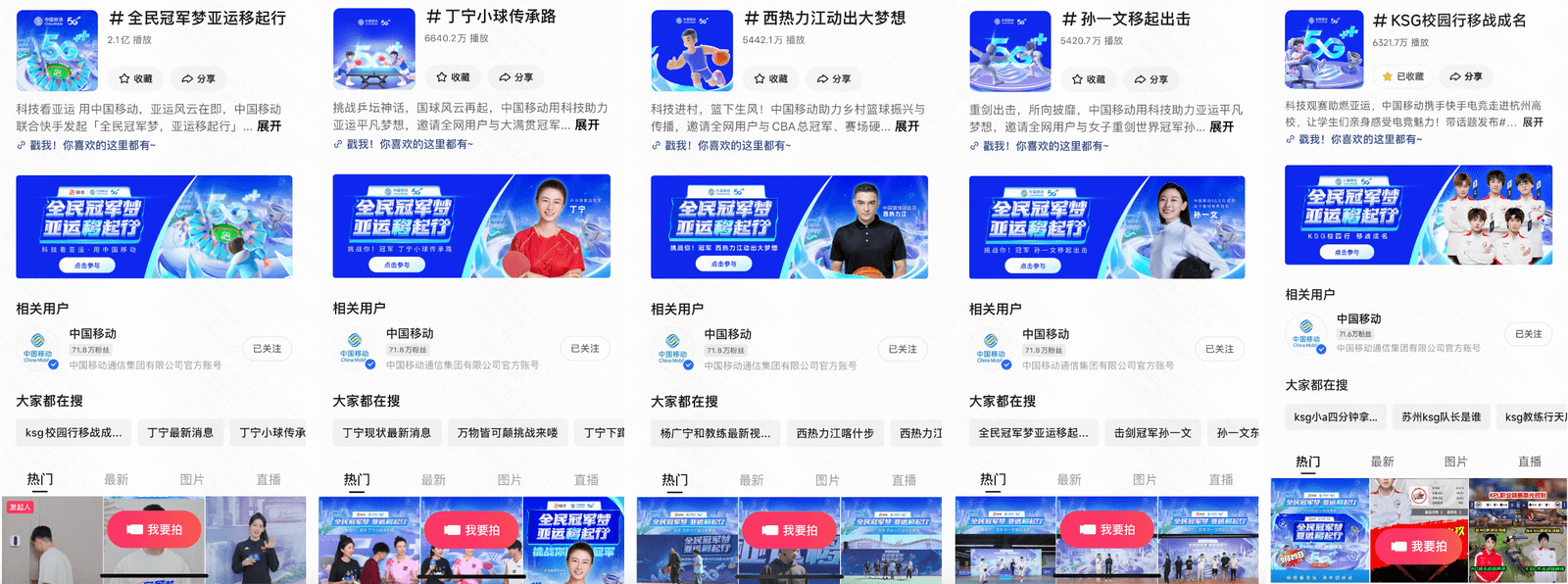 在此基础上,快手进一步在各个项目中场景化植入中国移动旗下多款产品的核心优势,更高效地将亚运话题热度转化为品牌关注度,精准卡位科技亚运与中国移动强绑定的营销心智,让“科技看亚运,用中国移动”更加深入人心。