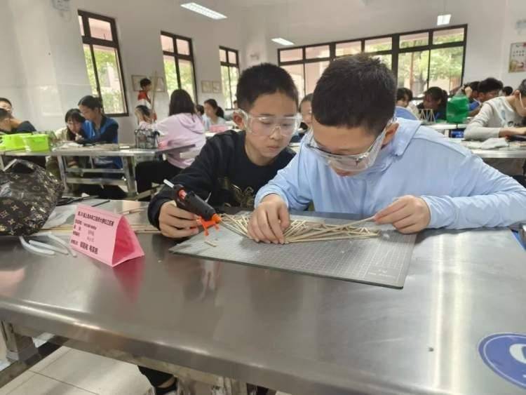 赛场上智慧火花四溅,精彩比拼引得大家惊呼连连。“哇!十几根吸管搭建的小椅子竟然能够承受超过20公斤的重量,简直不可思议!”在结构工程师类的轻量座椅项目中,选手们使用三维建模软件设计出合适的轻量座椅,利用吸管、卡纸等环保材料在40分钟内设计出一个轻量座椅,并完成承压测试。“机械工程师”们则将目光投向了机器人竞技场,在旱地冰壶机器人项目中,选手们需要设计出一个旱地冰壶机器人,通过投掷冰壶以平移运动滑行方式进行竞技,该比赛项目赛程分为对抗赛和积分赛,展现了选手们在智力、体力和团队精神上的优秀表现。此外,还有智能物流机器人、智能餐具消毒盒、横梁承重立体桥梁等比赛项目,吸引选手将科技与生活紧密结合。