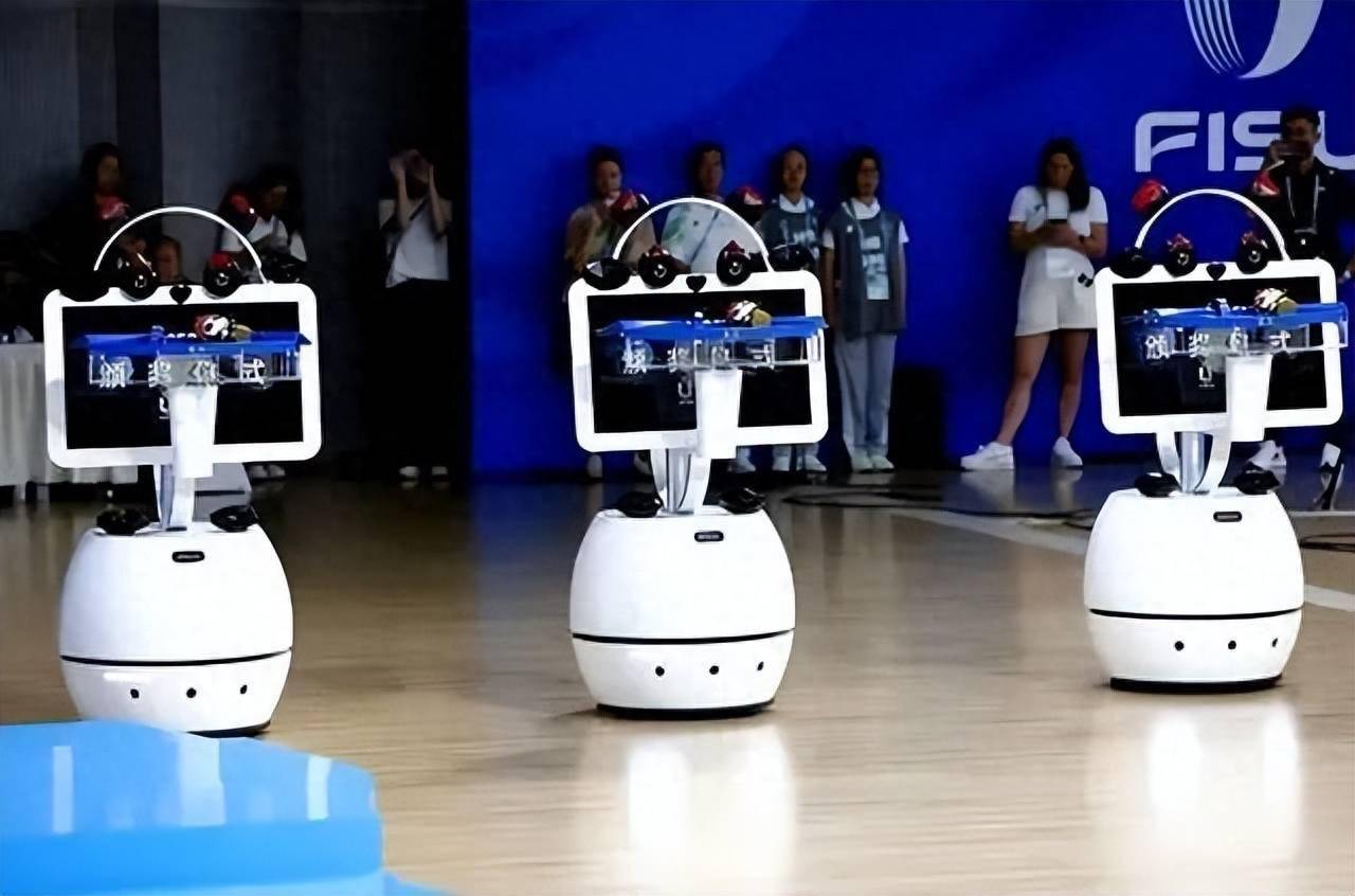 成都大运会上,与吉祥物“蓉宝”同款萌脸的“蓉宝”机器人成为一大亮点。成都大运会也因此成为世界上首次用机器人颁奖的国际赛事。