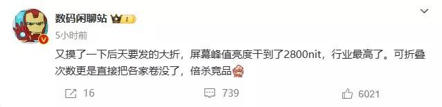 此外,日前,数码博主 @数码闲聊站 也爆料称,“又摸了一下后天要发的大折,屏幕峰值亮度干到了2800nit,行业最高了。可折叠次数更是直接把各家卷没了,倍杀竞品”。根据目前高端机型配备的屏幕明亮度参数来看,iPhone 15 Pro Max这种级别的手机屏幕峰值亮度也才2000nits,从官宣如此有底气的预热来看,OPPO Find N3峰值亮度达到2800nit应该不只是传闻了。