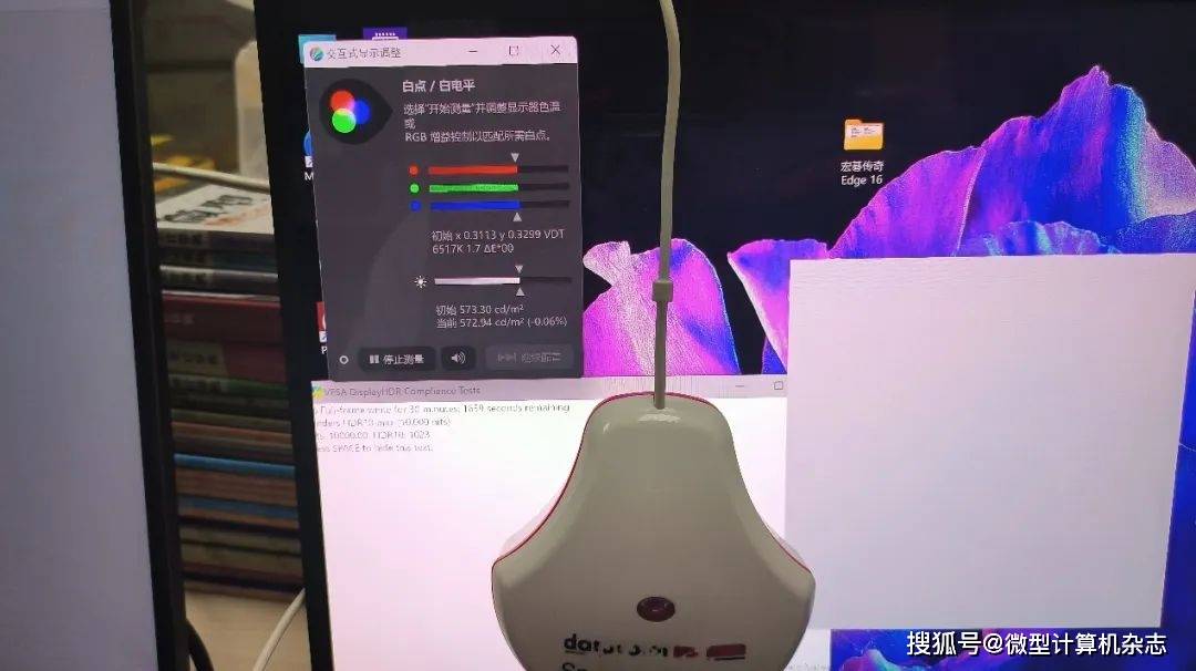 我们打开系统中的HDR模式,然后播放HDR内容并通过Spyder X Pro校色仪来检测播放HDR内容时这台机器的屏幕实时亮度。可以看到,宏碁传奇Edge 16播放HDR内容时,屏幕的最高亮度达到573.3nits,这样的数据已经远远超过了官宣的500nits,远超普通IPS屏幕的300nits,意味着在室外使用时也不用担心看不清楚屏幕上显示的内容。