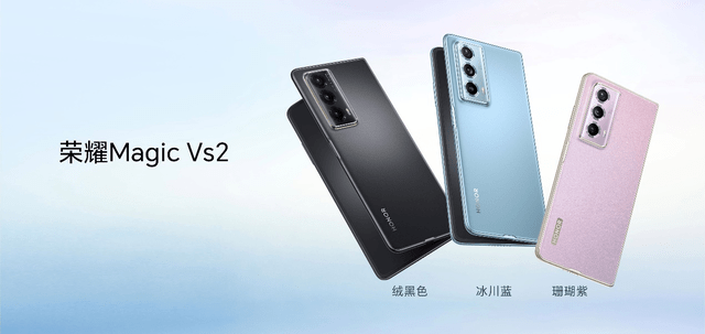 荣耀Magic Vs2提供冰川蓝、珊瑚紫、绒黑色三种配色,存储方面提供12GB+256GB和16GB+512GB两个版本,售价分别为6999元和7699元。荣耀Magic Vs2系列将在2023年10月12日20:30开启预售,并在2023年10月17日10:08起在荣耀商城、各大授权电商、荣耀体验店、授权零售门店正式开售。