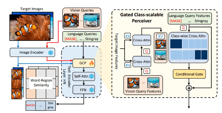 MQ-Det是一款革命性的多模态开放世界检测大模型,在NeurIPS2023首次亮相,引起广泛关注。该模型的核心创新在于融合了文本描述和视觉示例查询,以显著提升目标检测的精确率,整体性能提高了7.8%。