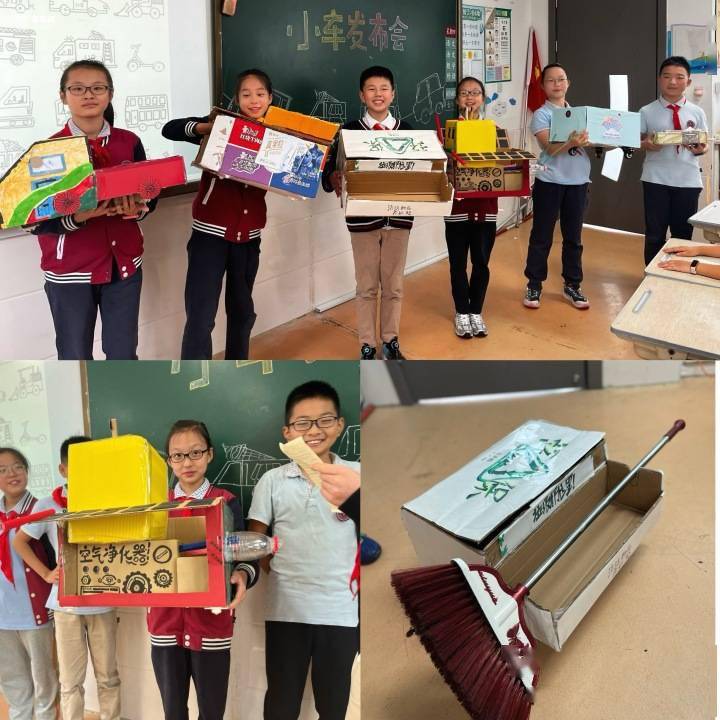 同学们巧妙地将一个看似毫无用处的纸箱变成了一个有价值的工具。当我们的眼前出现这写“小车”时,我们会不禁为其奇妙的设计和创造力所惊叹。同学们不仅发挥了他们的想象力,还利用废旧物品创造了一个具有实用价值的产品。他们用智慧和耐心,让一张张纸箱在自己的手中变成了一个可爱的小车。