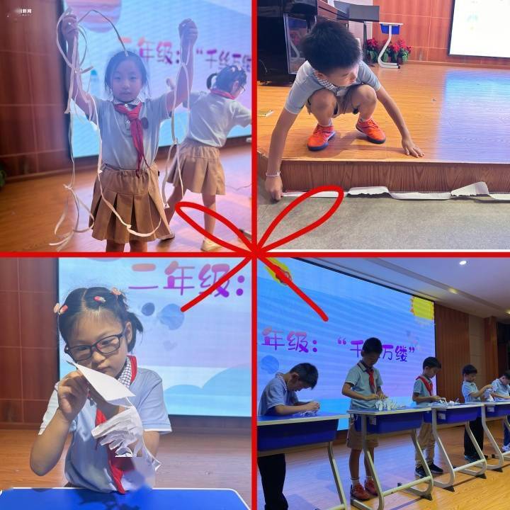 哇,这个撕纸活动真的很有趣呢!撕纸活动可以锻炼学生的手工能力和创意思维,也能够让学生更好地理解长度和面积的概念。学生们用创意的思维和精湛的手工技巧把一张废纸撕出一条长纸条,有些同学的纸条甚至达到了7米多。