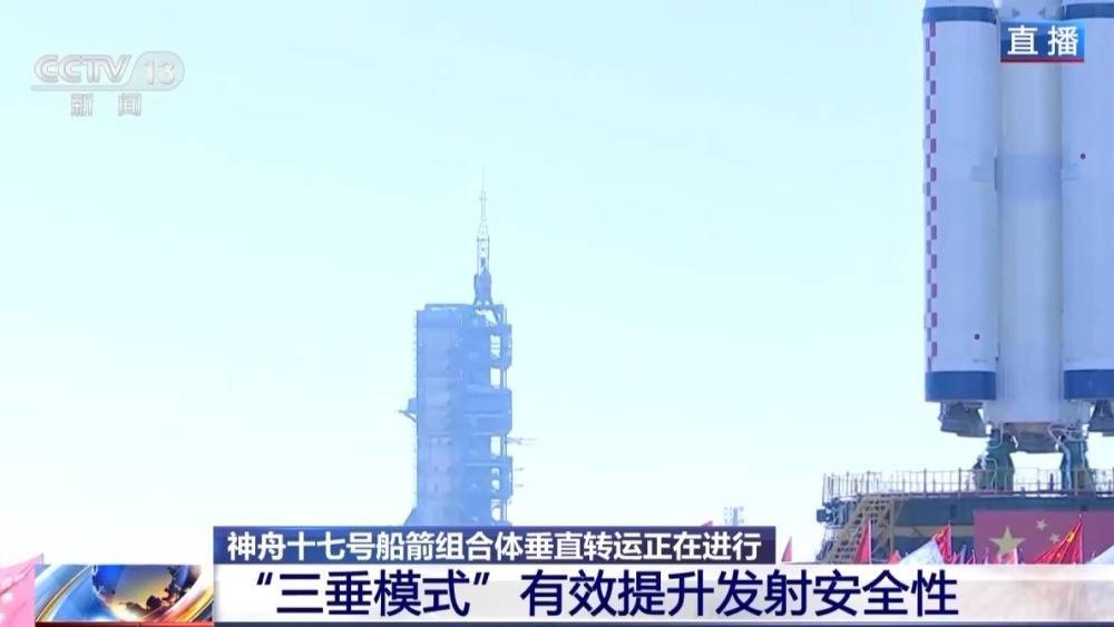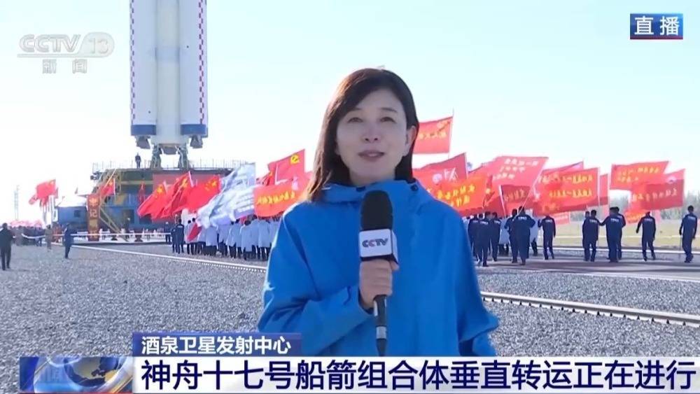 根据任务安排,本月将会发射神舟十七号载人飞船。在酒泉卫星发射中心,执行本次神舟十七号载人飞行任务的长征二号F遥十七火箭船箭组合体正垂直转运至发射区。