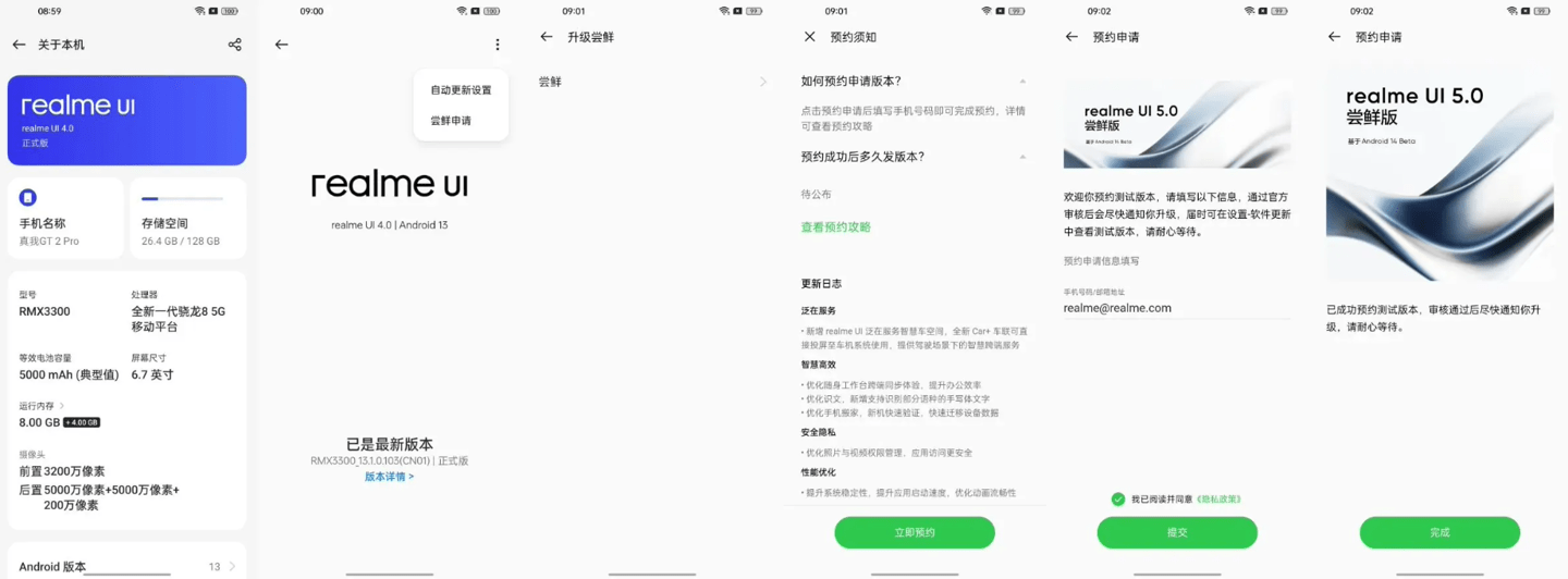 realme UI 5.0 尝鲜版申请步骤如下:
