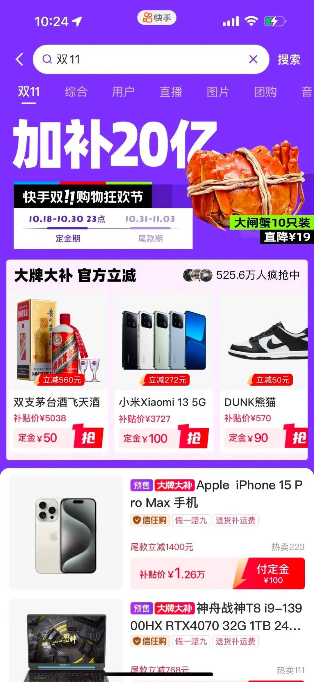 10月18日,快手电商双11购物狂欢节正式开启预售。今年双11,快手电商以“大牌百亿补,尽在快手商城”为主题,通过“大牌大补”政策的全面助力,力求让众多用户以更加实惠的价格购买到更高性价比的商品。同时,为了全面保障用户权益,快手电商还针对所有大牌大补商品,同步上线由中国太保产险承保的正品险,不断优化消费者在快手电商的购物体验。