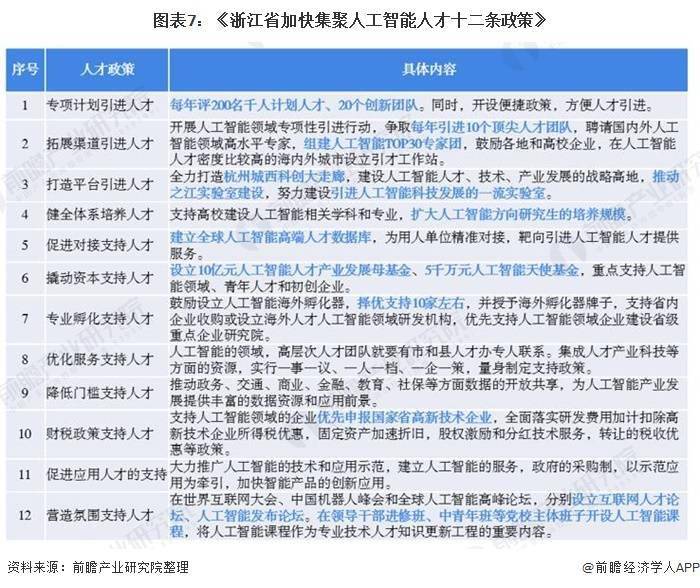 作为继2017年中国务院发布《新一代人工智能发展规划》后首个省级层出台五年产业规划的浙江省,为引进人工智能高素质人才,早在2018年就专门制定了《浙江省加快集聚人工智能人才十二条政策》,旨在五年内集聚50位国际顶尖人工智能人才、500位科技创业人才、1000位高端研发人才、10000名工程技术人员和10万名技术人才。同时,浙江省还设立了40亿元人工智能人才产业发展母基金。