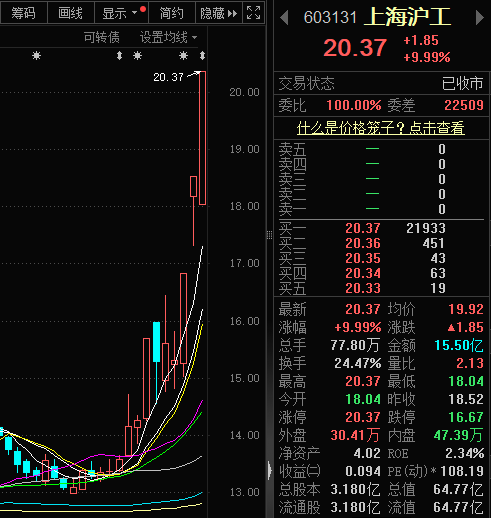 回到基本面,上海沪工为卫星通信概念龙头股,旗下企业为多种航天装备提供加工配套,也参与多种小型卫星的装配、制造业务。在7月我国卫星互联网技术试验卫星成功发射期间,该股就曾有亮眼表现。