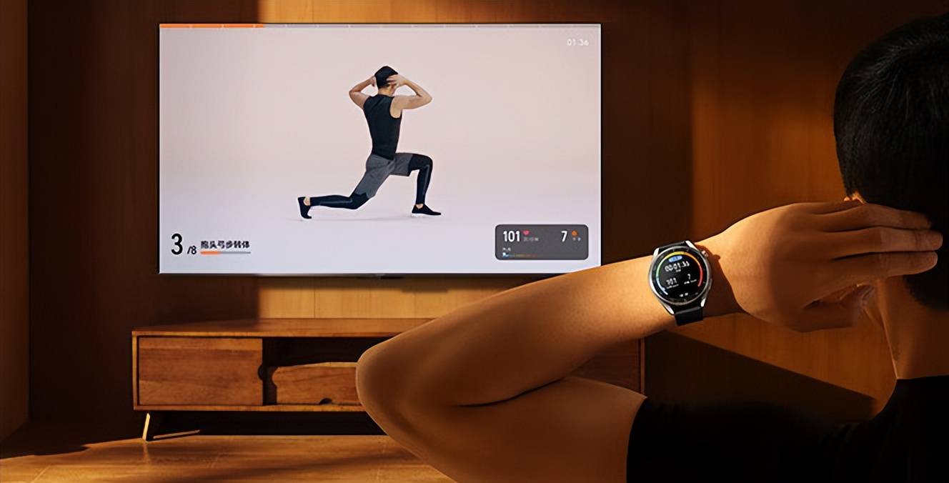 此外,虽然没有摄像头,用户依然可以通过智慧屏学习健身课程,并且由华为手表记录运动情况,获得指导和建议。