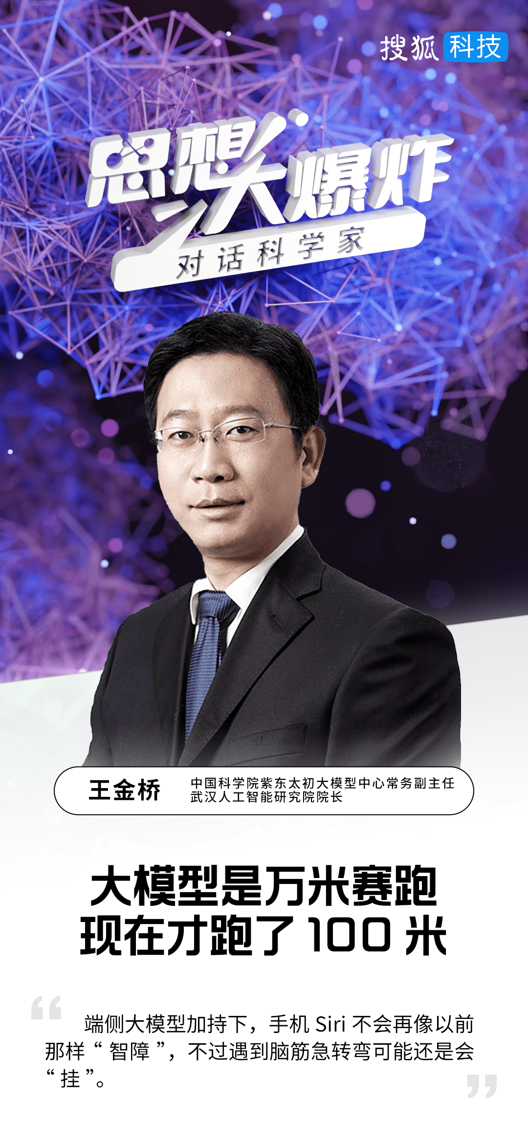 搜狐科技《思想大爆炸——对话科学家》栏目第36期,对话中国科学院自动化所“紫东太初”大模型研究中心常务副主任、武汉人工智能研究院院长王金桥。
