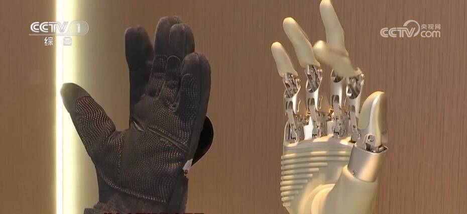 总台央视记者 李晶晶:这只手套看起来普普通通,其实它模拟了智能仿生手,通过人机交互等高科技,把手臂神经肌肉信号转化成仿生动作,实现5根手指的灵活独立运动,甚至能完成精准的抓取,帮助运动员重“掌”生活。
