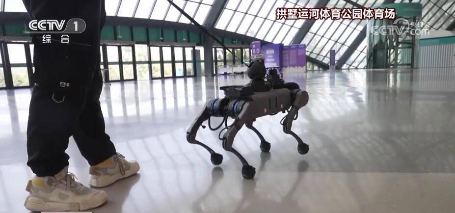 在盲人足球的比赛场地——拱墅运河体育公园体育场,由西湖大学研发的电子导盲犬“小西”已经就位。它不仅把整个场馆的地图铭记于“心”,还能“听懂”中英双语,甚至还能规划最佳路线,就连这根导盲绳也充满科技含量。通过绳端传感器,可以调节电子导盲犬的行走速度,为盲人运动员和视障观众提供安全、高效、细致的服务。