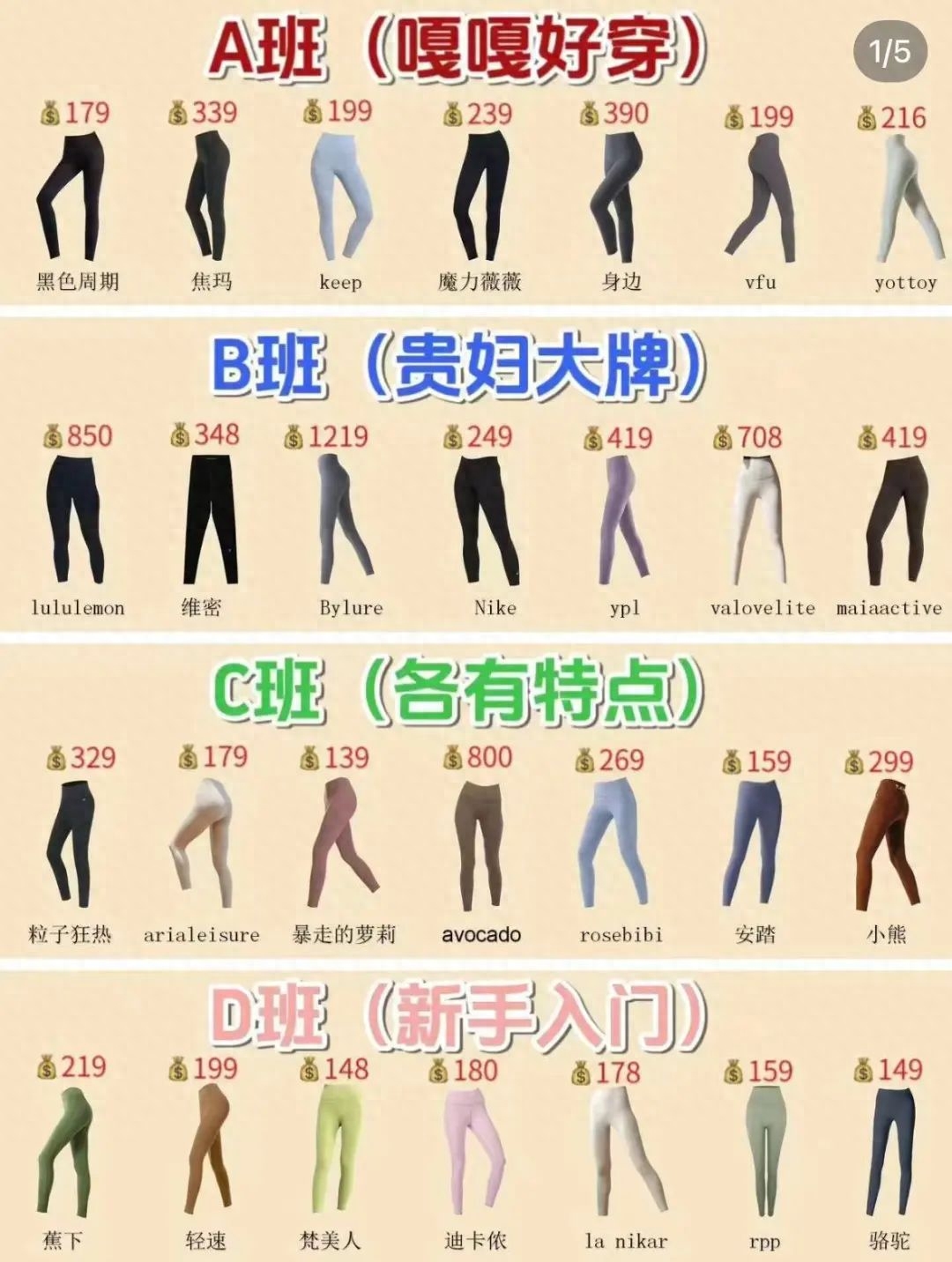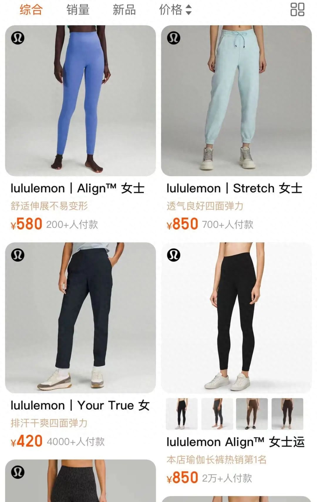 大部分国产瑜伽裤的价位都集中在200~500元左右,仅为Lululemon售价的一半甚至1/3。