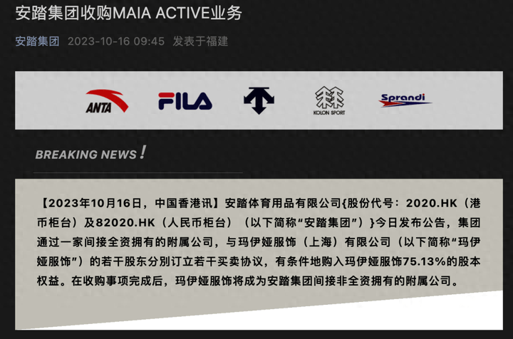 如今的安踏,确实有能帮助Maia Active渡过难关的体量和实力。