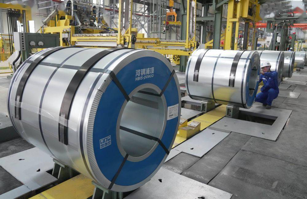 ↑10月19日,工人在河钢浦项汽车板合资项目生产线上工作。新华社记者 杨世尧 摄
