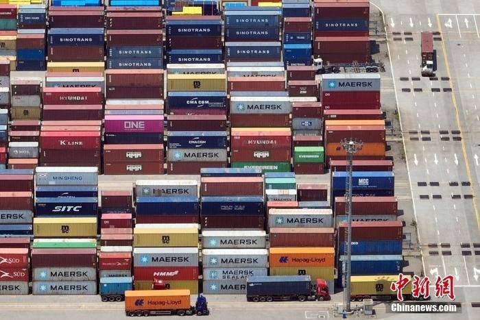 资料图:航拍集装箱码头。(无人机照片) 中新社记者 泱波 摄
