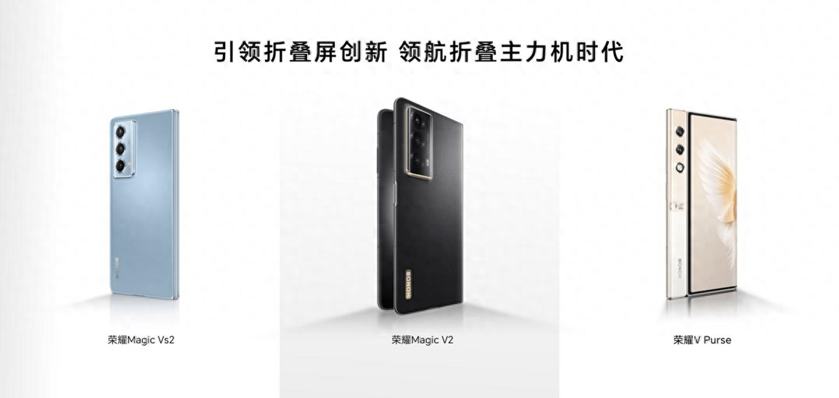例如,在折叠屏领域,荣耀以行业的关键痛点“厚重”为抓手,以“轻薄是折叠屏第一科技力”理念为指引,持续发力,在今年下半年推出荣耀Magic V2、荣耀V Purse和荣耀Magic Vs2,实现折叠屏三连击,打造出覆盖全档位、面向全人群的轻薄大折叠产品矩阵。一举实现对行业轻薄化趋势的引领:荣耀Magic V2系列引领横向折叠屏手机进入“毫米时代”;荣耀V Purse更是实现了机身厚度小于9mm,以钱包形态探索全新时尚表达方式和人机交互新体验;轻薄更进一步的荣耀Magic Vs2则使整机重量降低至229g,创造横向折叠屏手机的全新纪录,打破折叠屏从先锋到主力的边界。而轻薄的背后,是荣耀深入底层基础技术研究,持续进行前沿科技探索,进而对行业既有做折叠屏思路的全面解构与重构。