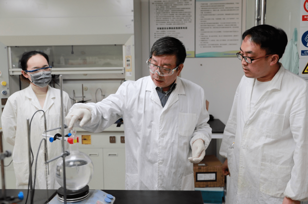 复旦大学化学系教授、中国科学院院士赵东元在指导学生实验,并利用AI工具处理实验数据。