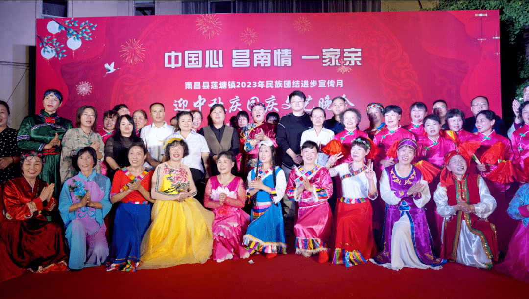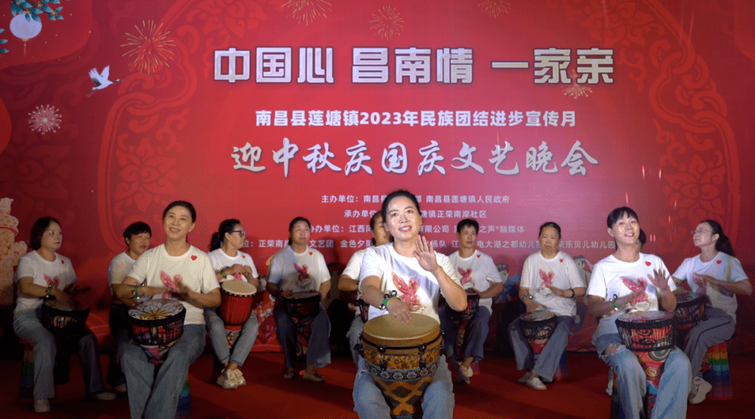 9月24日,“中国心 昌南情 一家亲”——“2023年民族团结进步宣传月”系列活动之“迎中秋 庆国庆”文艺晚会在莲塘镇正荣南岸社区举办。