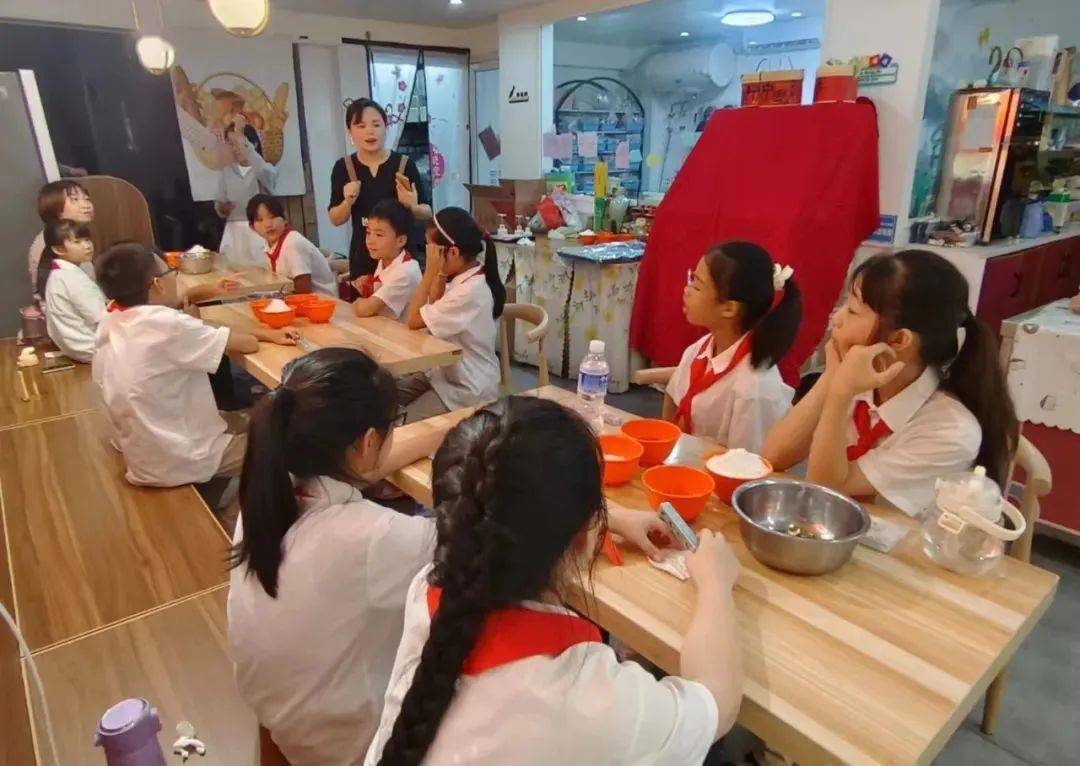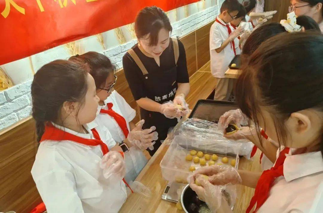 在面点老师指导下,志愿者和孩子们共同完成了从揉面团、包馅、到放入模具、按压完成的过程,齐心协力制作了中秋团圆月饼。