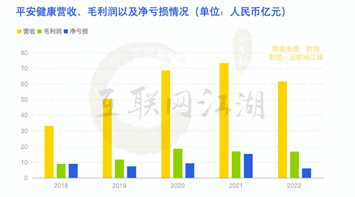遗憾的是,2022年,平安健康的增长动能比并没有恢复。年报显示2022年平安健康营收61.60,同比下跌16.01%,毛利润16.85亿,净亏损6.08亿。