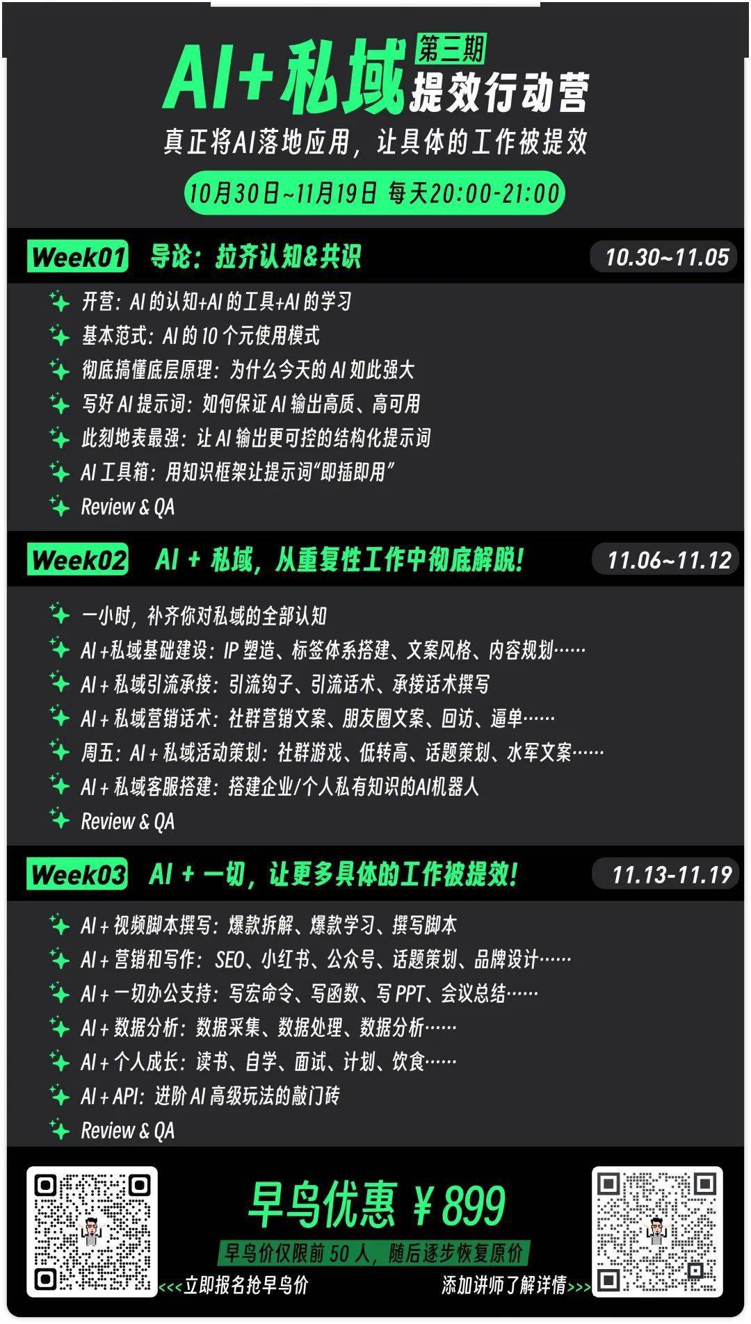 第三期马上开营了,连续 21 天,教你用好 AI、教你用 AI 提效私域运营和日常各种工作。