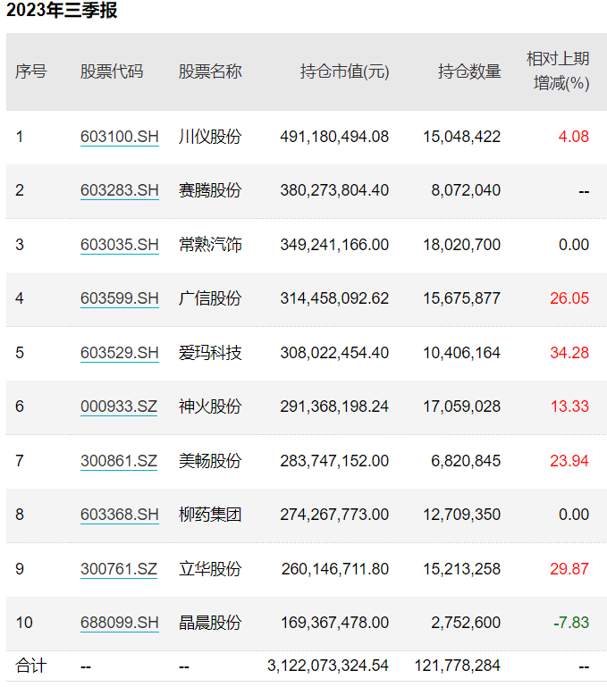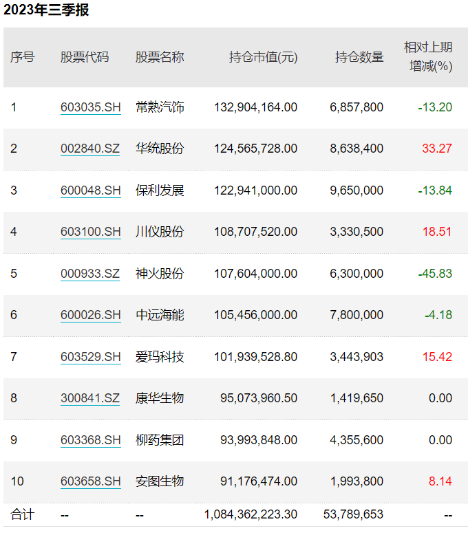 然后是,驰宏锌锗退出前十大,新进前十大,加仓了川仪股份、、爱玛科技等个股,减持了。