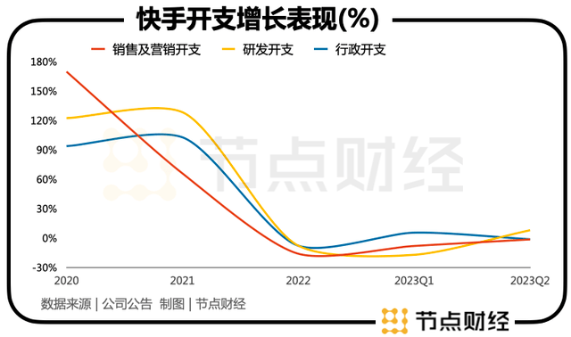 二季度,快手的销售及营销开支为86.4亿元,同比减少1.4%,研发开支同比减少1.2%至31.5亿元,行政开支同比减少3.9%至9.4亿元,规模一共同比减少了2.6亿元。