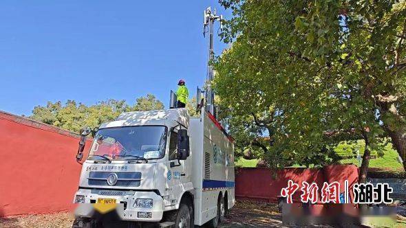 玉虚宫是世界武当太极大会开幕式当天的主会场。10月20日,在玉虚宫停车场,中国移动湖北有限公司武当山分公司工作人员正在进行应急通信车设备调试,并完成4G、5G天线布放和基站的开通工作。