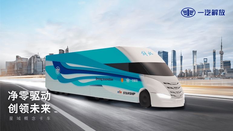 【一汽解放与壳牌重磅发布星域概念卡车】10月20日,一汽解放与壳牌正式发布了双方合作打造的星域概念卡车(Starship China)。星域概念卡车汇集双方前沿理念与技术优势,是一款专为中国道路运输行业打造的先锋型概念卡车,其在提升运输效益的同时,能够最大化实现低碳减排。(每日经济新闻)
