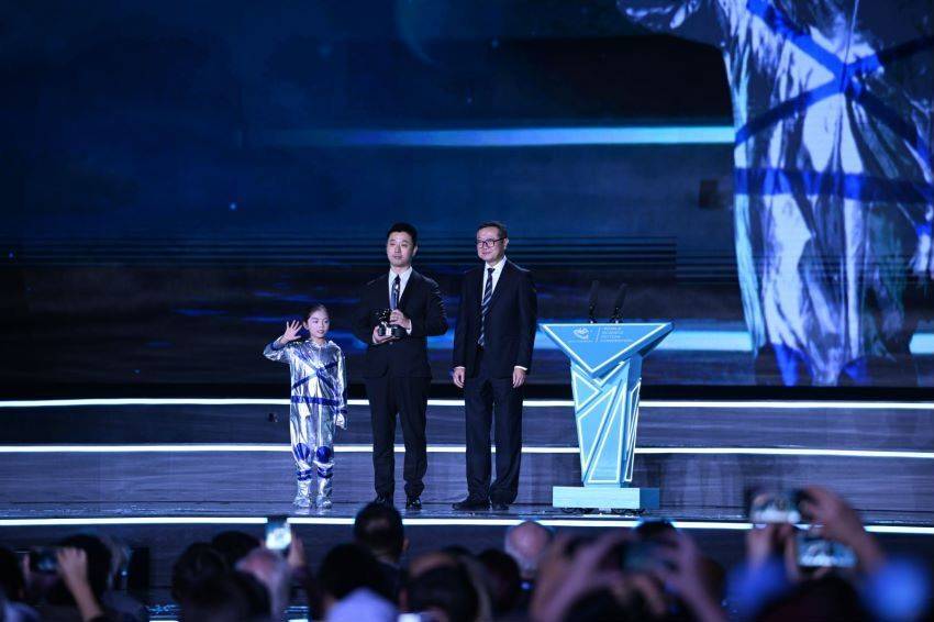 获奖者上台时,一同登台的还有一位小幻迷。大手与小手的相牵,体现了科幻所承载的寓意:希望与未来的连接。