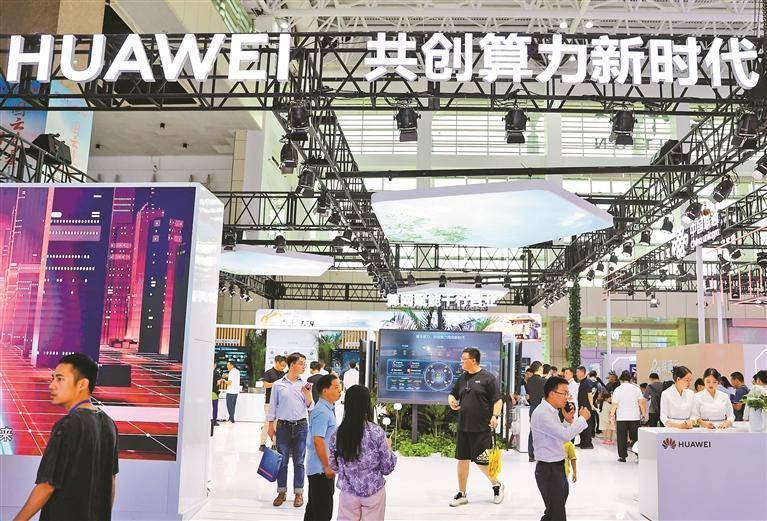 在2023中国算力大会上,华为展台吸引众多参观者。 (中新)
