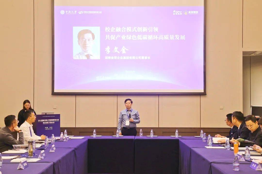 李文金董事长受邀为专题论坛作主旨演讲。演讲中,李文金董事长以《校企融合模式创新引领 共促产业绿色低碳循环高质量发展》为题分析了目前高校成果转化的现状,提出了通过校企融合模式化创新,加快科研成果产业化应用的思路,把科研成果变成产品,变成商品,推向市场。