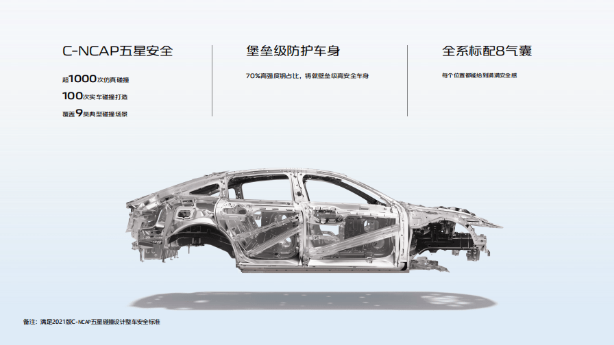 当然,除了电池安全之外,长安启源A07在传统的主、被动安全配置上也下了很多功夫。“五横九纵”的环抱式车身架构,高强度钢占比更是高达70%,打造出“壁垒级”高安全车身。