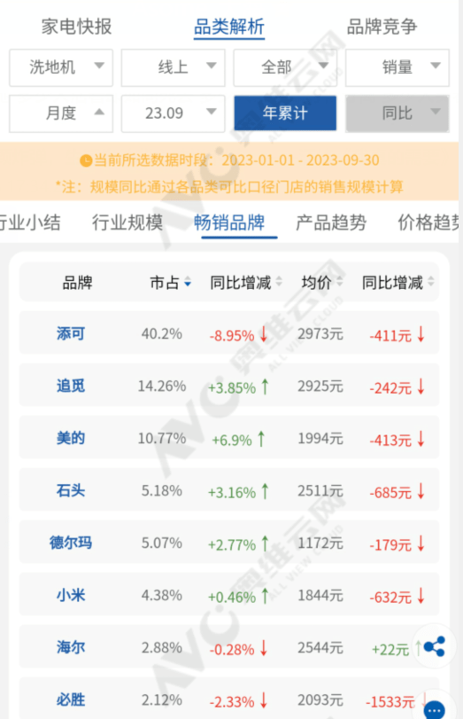 首先,洗地机市场增长放缓。