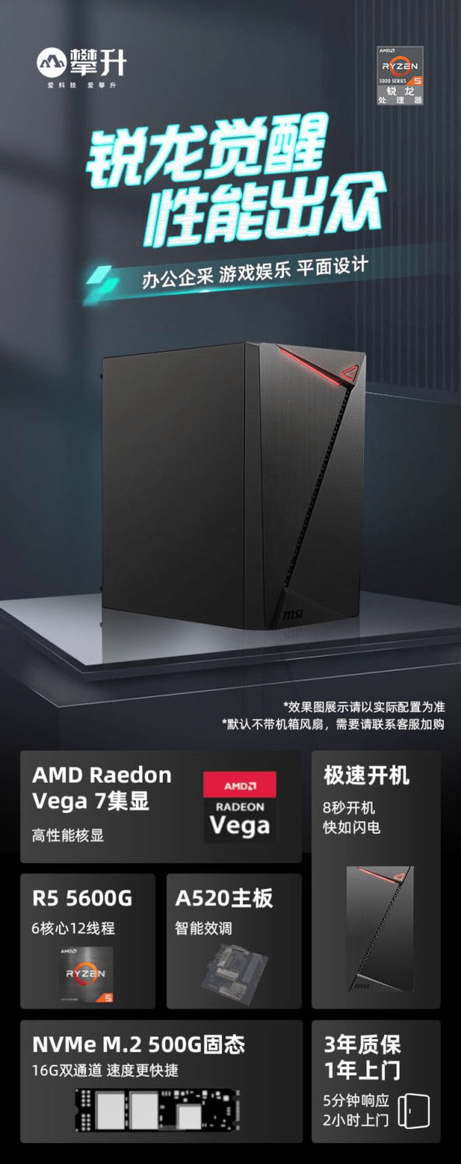是你的你没听错,这款攀升电脑主机仅需要千元出头,但它搭载了性能不错的AMD 5600G 处理器,拥有6核心和12线程的规格,用来跑一些类似《英雄联盟》的在线网络游戏完全没有问题。