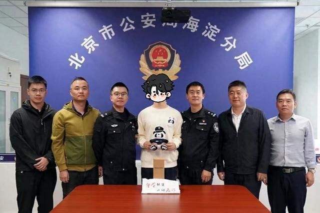 小郭(中)接受海淀公安的表扬。 图源:海淀公安