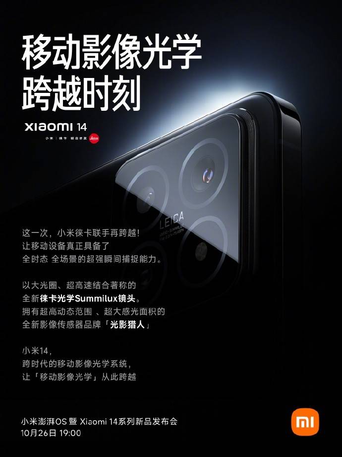 很快,昨天小米14就被官方官宣,将在本月26日晚上七点发布全新的小米14和澎湃OS。紧接着官方也是开启了爆料模式,疯狂开始对小米14进行了预热。
