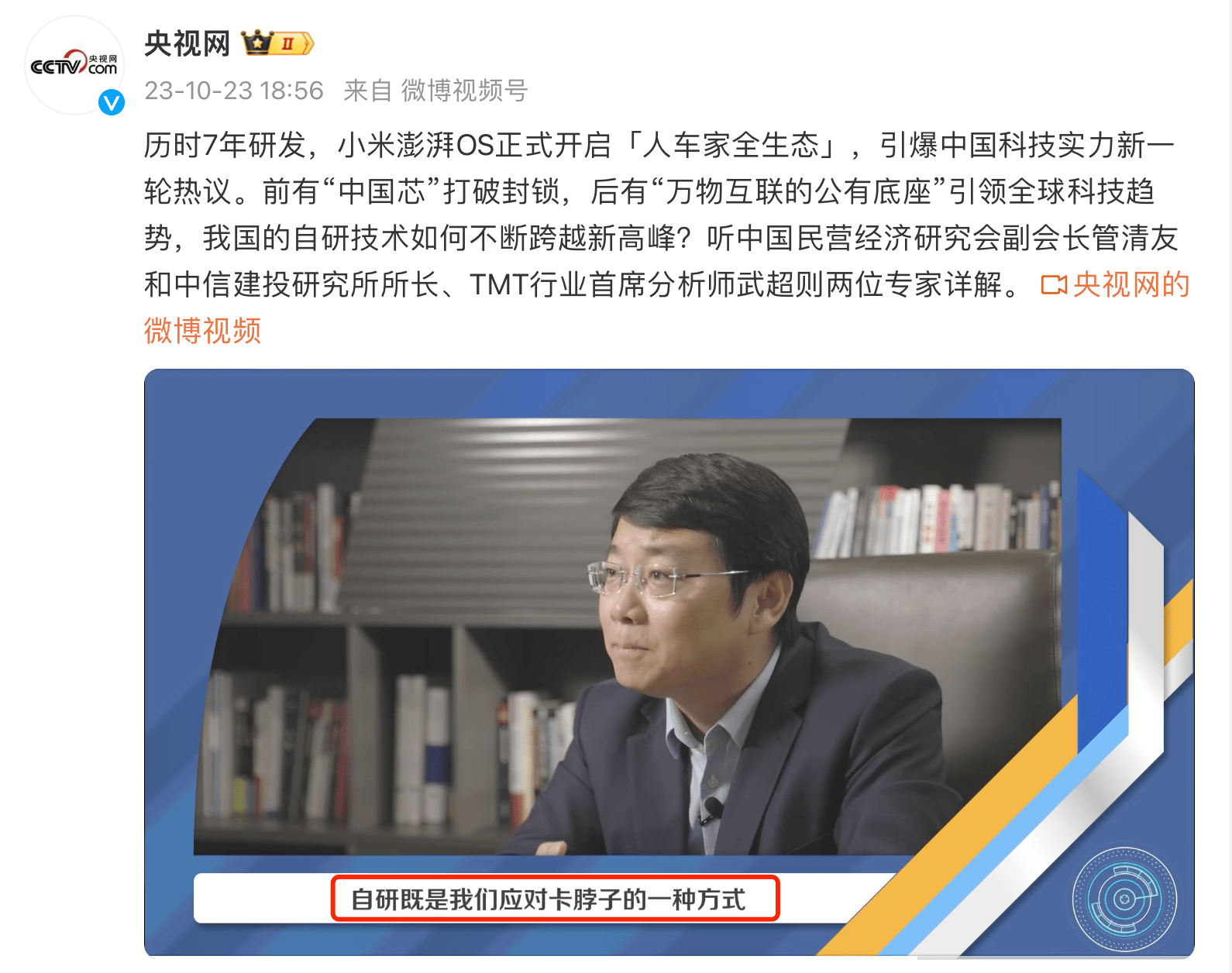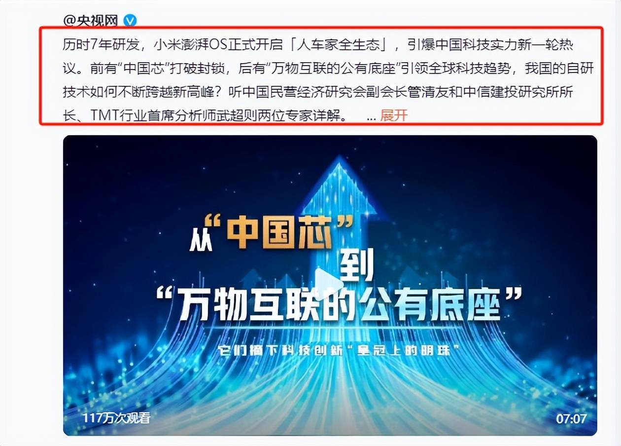 针对这个问题,央视也做出了关键定调,提到了关键的一点,华为鸿蒙、小米澎湃OS就是中国操作系统的“双保险”,很显然,官方也肯定了小米背后所作出的努力,以及对中国科技产业所作出的贡献。
