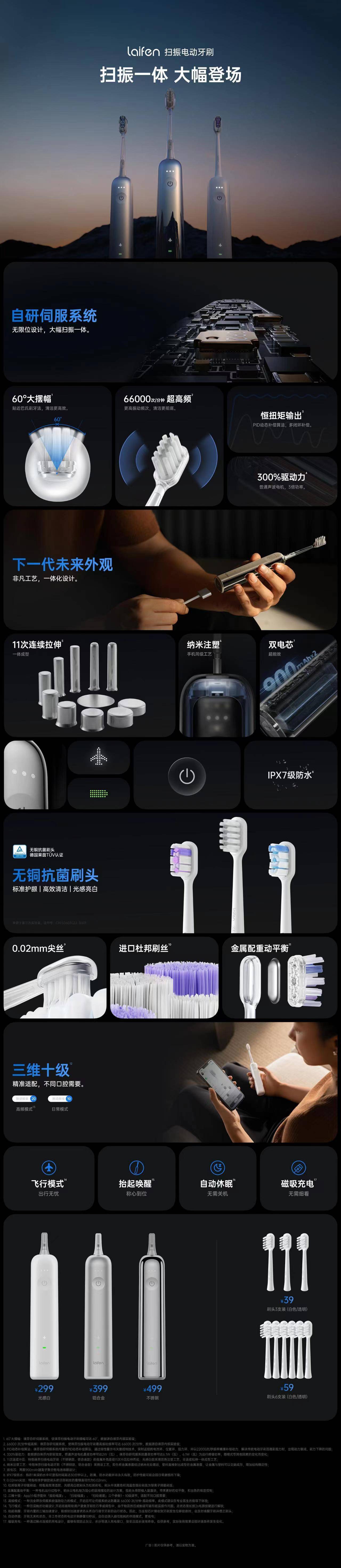 其实都不用我多说,一张图就能让你全面了解徕芬扫振电动牙刷。