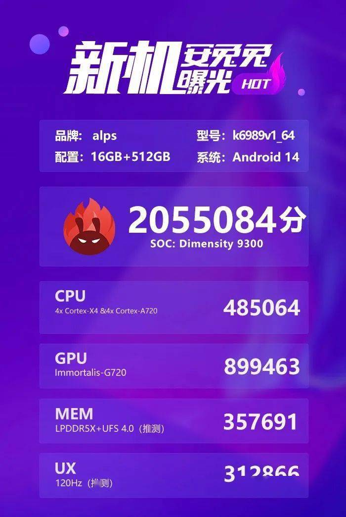 据官方预热,天玑9300将开启全大核时代,拥有全大核、高能效、高智能、高性能、低功耗,“久、强、稳、迅冷”等特性。而天玑9300目前规格跑分也均有曝光。