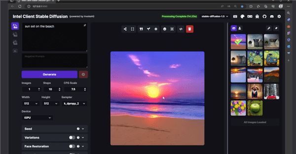 比如图形视觉领域最火的Stable Diffusion的实现Automatic1111 WebUI,已经可以在Intel处理器、显卡上以FP16的浮点精度运行,包括文生图、图生图、局部修复等都可以获得良好的体验。