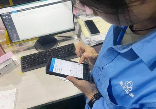 在库房内,员工将生产配送信息输入至手持移动终端,在这个“移动电脑”上可以看见物料进入公司、库房的时间,物料的相关信息也会实时显示。当员工需要物料时,可通过出库单据取出物料,发放至生产车间。