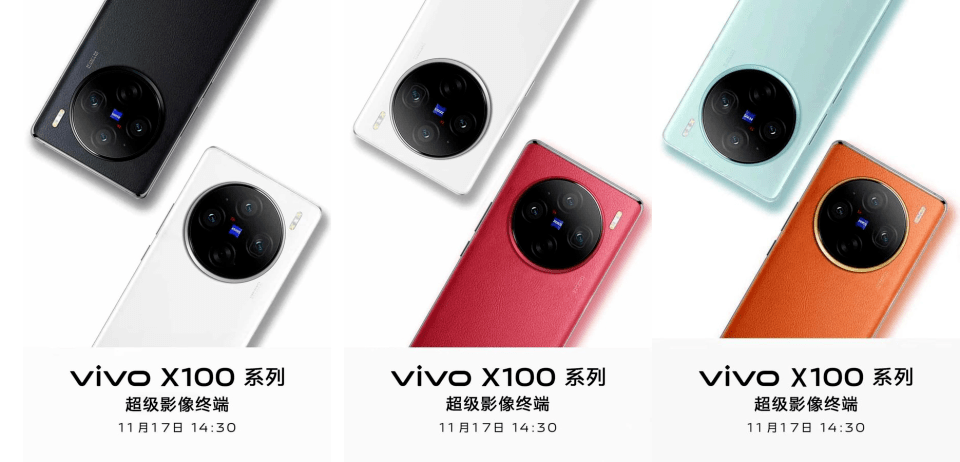 另外,日前,有外媒放出了数张有关vivo X100系列新机海报,从曝光的海报上可以看到,即将亮相的vivo X100系列旗舰新机,疑似将会在11月17日下午14:30正式发布。除了发布时间外,海报还展示了多款新机的颜色,除了上代标志性的原黑和华夏红、新推出的告白和X90s上的青漾外,还新加入了一个橙色,而上代X90的冰蓝色则没有出现在海报上。另有消息称,相比于上代Pro版本仅推出了两种颜色,新的X100 Pro在配色上会更加丰富,而X90上备受好评的白色也有望出现在X100全系机型中。