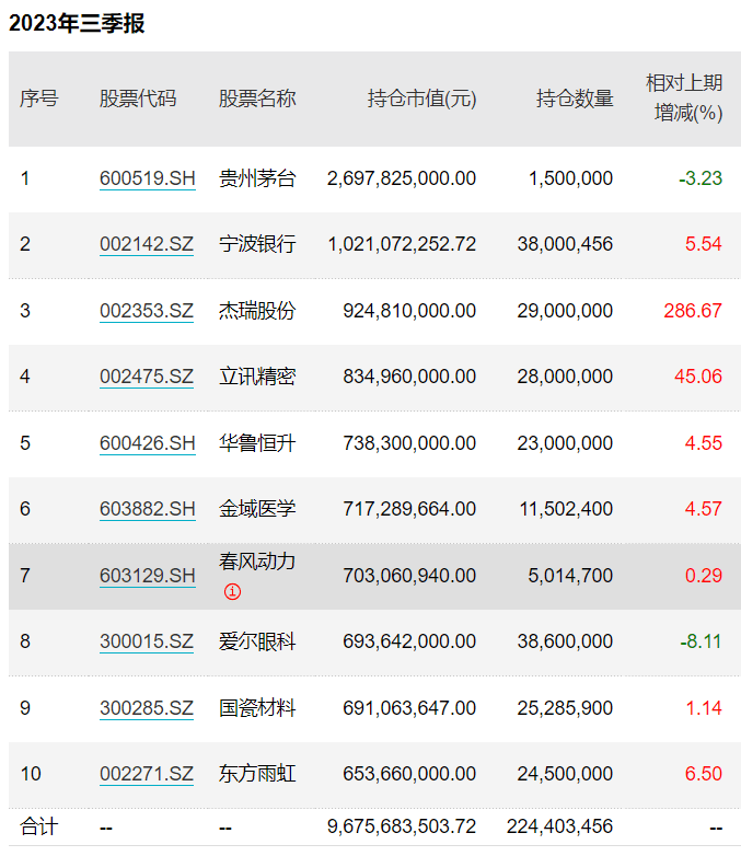 基金三季报持续披露中。