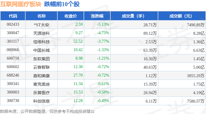 北向资金方面,当日互联网医疗板块北向资金持股市值为387.44亿元,减持6.48亿元。其中增持最多的是人民网,增持了0.35亿元。减持持最多的是恒生电子,减持了2.2亿元。互联网医疗板块北向资金持股变动明细见下表: